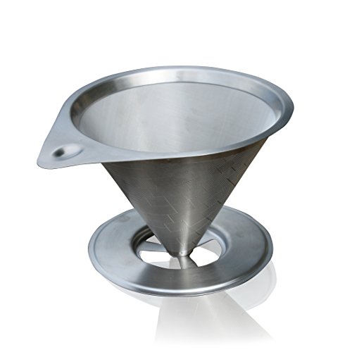-. Brand : Tortuga Home Goods -. Color : Gray -. EAN : 0607885738839 -. Feature : SOLID AND ELEGANT CONSTRUCTION - The one piece construction ensures you can pour hot liquids with confidence that the filter will remain in place. The solid construction makes it easier to use, clean and store. It can also easily be stored upside down. / REUSEABLE, PAPERLESS & EASY TO CLEAN - Never worry about if you have any filters to make coffee with. Nothing is more frustrating than realizing you don't have a coffee filter when you are just getting ready to make a pot of coffee. Stop buying paper filters which impart flavors, with this filter you'll never have to buy paper again! Order now and start saving money today. / PERFECT FOR ALL YOUR COFFEE ADVENTURES - The compact design of the Java Bean two-stage filter is perfect for your camper, boat, camp, office or travel. All you need is freshly ground coffee, boiling water and a mug and you'll get fresh great tasting coffee everywhere you go. / LASER CUT TWO STAGE FILTER - The two-stage coffee filtration starts with our 18/8 28-micron fine mesh interior cone. This filter removes 99.9% of all the grinds while still retaining the bold flavors and oils that provide you with a delicious cup of coffee. The secondary filter aerates the coffee as it is following through allowing the essential oils to blossom in your cup. This filter is perfectly designed for freshly ground coffee or tea leaves. / 100% MONEY BACK GUARANTEE - We are an American owned and operated small family business. We stand behind all our products. If you are not 100% satisfied, neither are we. Simply contact us and we'll make it right. -. Label : Tortuga Home Goods -. Manufacturer : Tortuga Home Goods -. MPN : JB-FWS -. PartNumber : JB-FWS -. ProductGroup : Kitchen -. ProductTypeName : KITCHEN -. Publisher : Tortuga Home Goods -. Studio : Tortuga Home Goods -. Title : Pour Over Two Stage Stainless Steel Coffee Filter With Base - Paperless & Reusable - Permanent Coffee Dripper for 1-4 Cups -. UPC : 607885738839