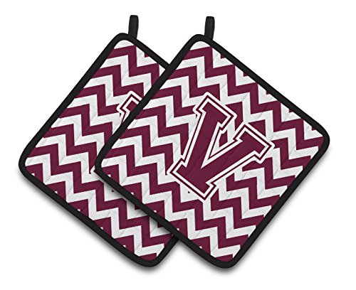 Caroline's Treasures Letter V Chevron Maroon & White Pair of Pot Holders CJ1051-VPTHD, 7.5HX7.5W, Multicolor