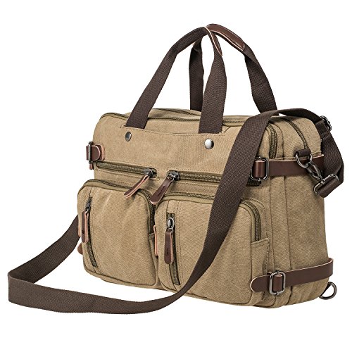 -. Feature : Large Capacity: 17.3 x 12.6 x 5.1 inch,a protective compartment.Fits most 15.6-17 inch laptop/Notebook/MackBook,may not fit all computers due to variation in the sizes of the different models / A Durable High Quality Laptop Computer Bag Backpack: Light and soft canvas,cotton lining,top quality leather decoration makes the bag elegant,exquisite stitching,handcraft. / Covertible Messenger Bag Backpack:Come with a detachable single shoulder strap and two shoulder straps hidden in the back compartment.It can be a backpack or a carrying bag,crossbody bag/briefcase,you can use the way you like or feel comfortable / Lots of outside pockets,convenient to organize your items and easy to find what you storing. / This briefcase is perfect for weekend trip/daily using/work/school/short travel etc.fashion casual style and vintage design,suitable for men and women.