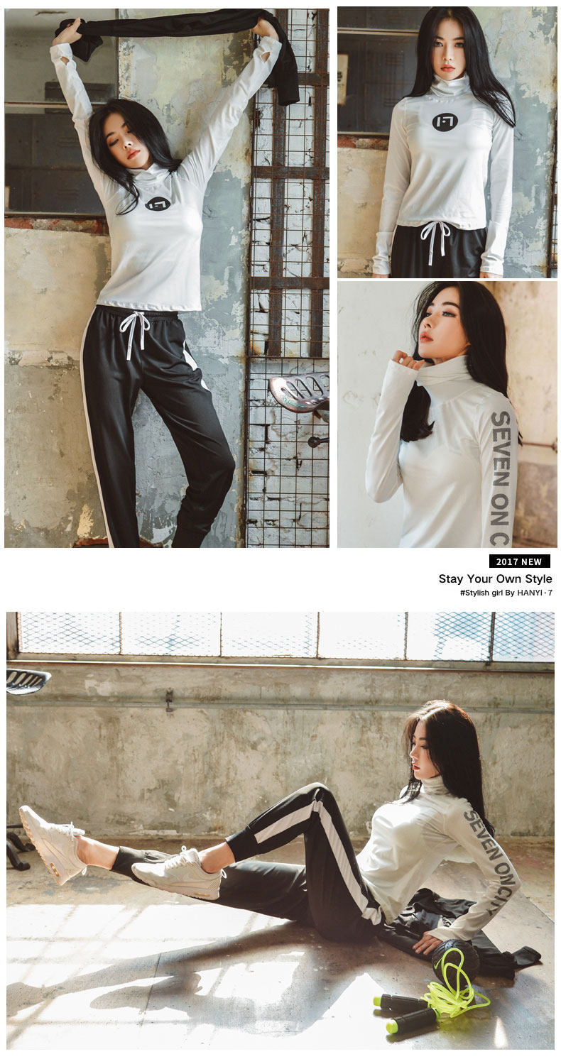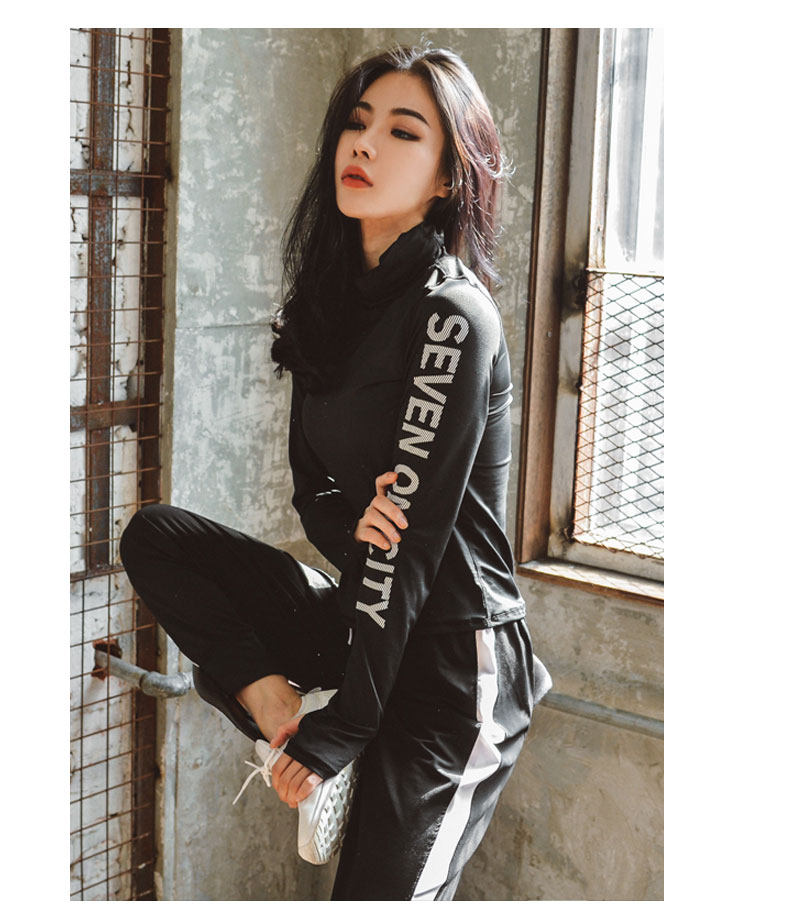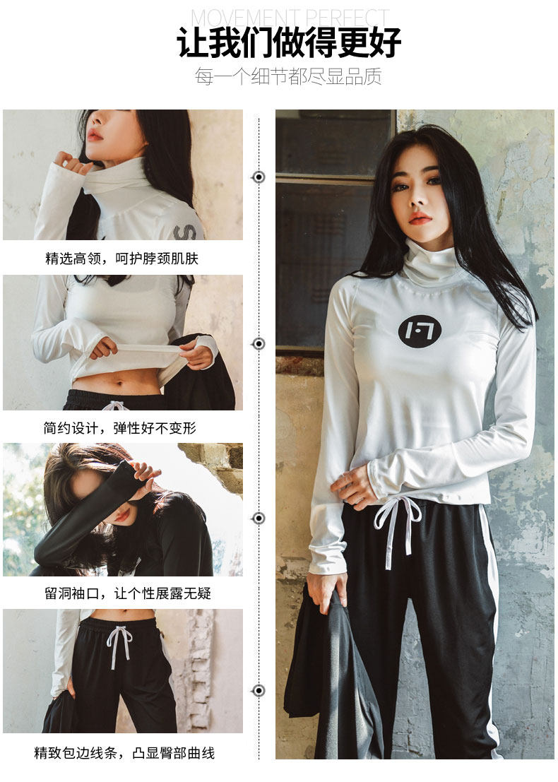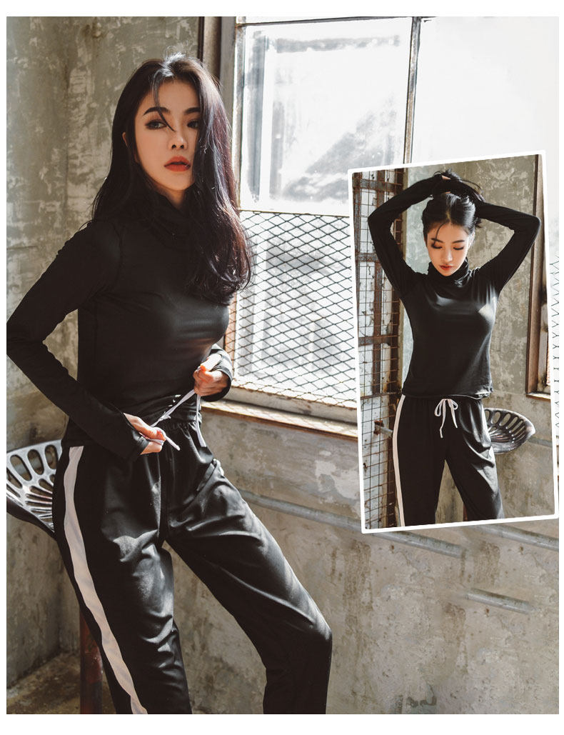 韩国瑜伽服套装女秋冬新款健身房跑步运动套装女高领速干健身服女