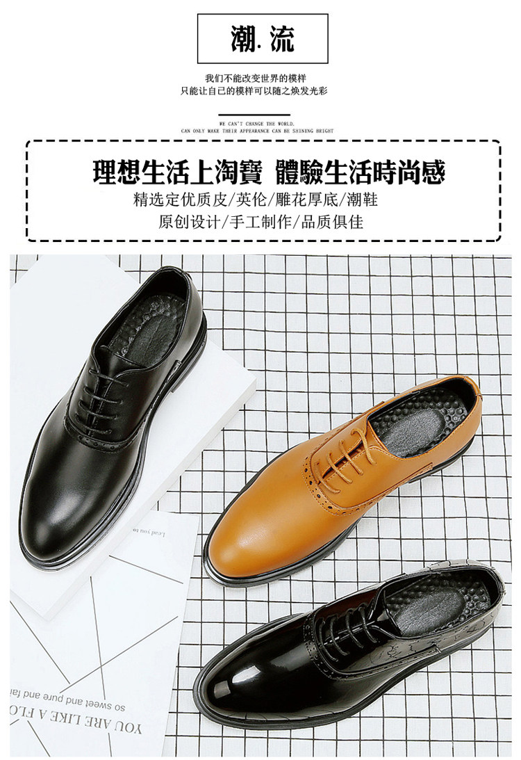 英伦男士尖头皮鞋夜店发型师结婚皮鞋男商务休闲鞋松糕内增高皮鞋