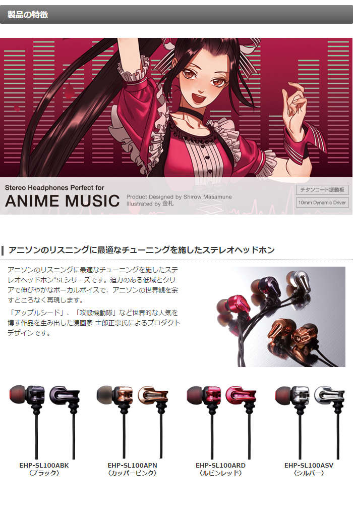 ●アニソンのリスニングに最適なチューニングを施したステレオヘッドホン“SLシリーズ”です。
