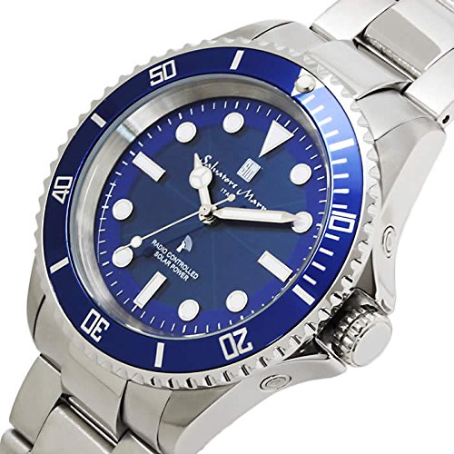 [살바토르메라]Salvatore Marra 손목시계 맨즈 전파 솔라 당점 한정 다이버스 워치 전파 솔라 비지니스 SM16103 실버 블랙 블루
