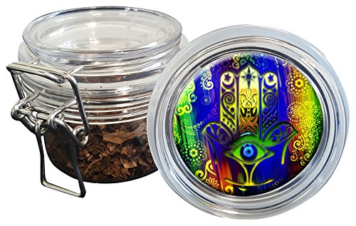 Expression Gifts Airtight Stash Jar With Silicone Seal, Psychedelic Hamsa Hand Of Fatima, Food, Grade Plastic With Locking Wire Top, Smell Proof Hermes Container