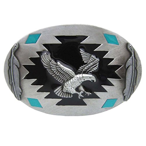 Description: - Unique Antique Silver tone Flying Eagle Design - Vintage Western Country Music Style Cowboy Belt Buckle Fashion Jeans Accessories for Boys Men - Music Rock Style Belt Buckle will fit any suitable belt Width up to 1.5"(39mm) - Material: Zinc Alloy, high quality finished and hardness - Oval Shape Buckle Size: approx. 8.0 x 6.0cm/3.14 x 2.36inch Package Includes: 1 Piece Belt Buckle