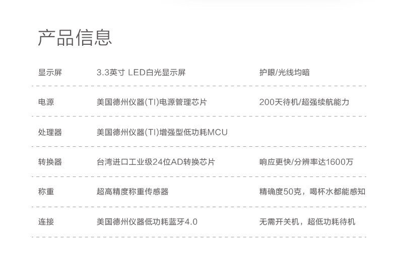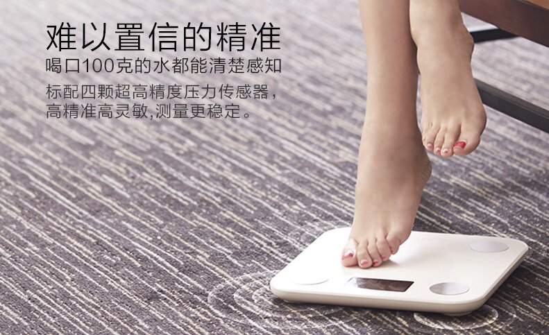 4, weighing accuracy and put your device's location to some extent. First make sure the device is placed on a solid and flat surface, pro Please note Oh, wood flooring is not enough yet. Under additional reminder: purification when the most accurate measurement oh, such as in the morning, after a bath or weighing less clothing. Note also weighing mode: Remove shoes and socks when measuring; measuring not free to leave or shaking; wait for the display to show the data is completed in good light left; the next weighing wait 2-3 seconds off the screen again.