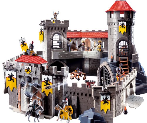 -. Feature : The Lion Knights' Castle, with its action-packed traps and functions, is sure to entertain for hours / The asymmetrical shape of the castle provides plenty of space for playing / Castle is protected by double gates with a portcullis and falling rocks / A breakout wall, drop-down ladder, and a secret lift to bring up the king's treasure / Includes six figures, two horses, functional cannons, and many other accessories