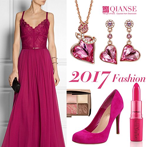 ♥MATERIALS & MEASUREMENTS♥ Pink Heart Shaped Swarovski Crystal & Small Preciosa crystals, Environmentally friendly material Rose Gold Plated Zinc Alloy, Lead-Free & Nickle-Free, passed Swiss SGS Inspection Standard, no harm to health. ◆Chain Length 18 inches (Adjustable), Pendant 1 * 3/5 inch. | Earring 1 * 1/2 inch◆ Comes in a nice gift box.
