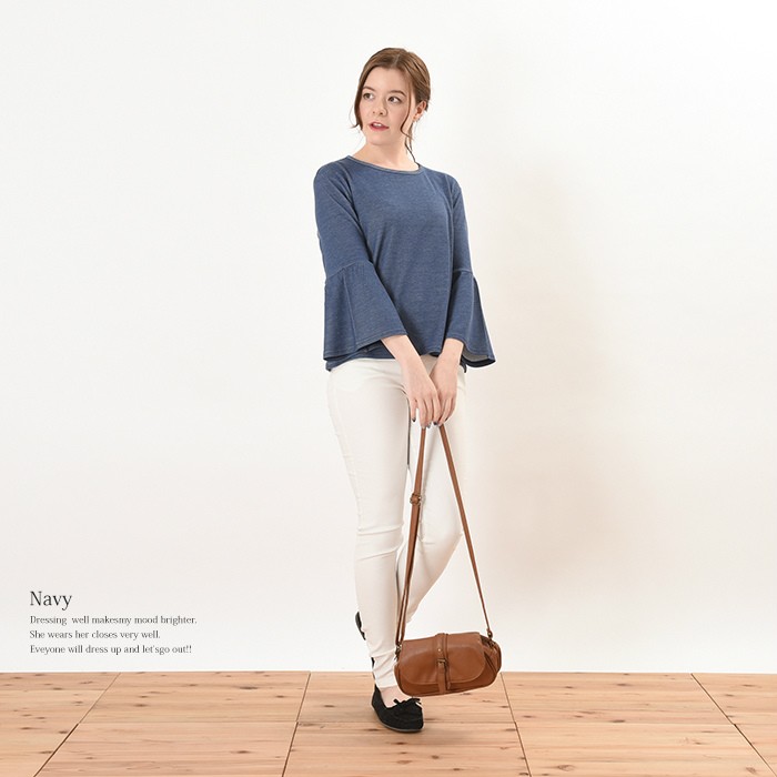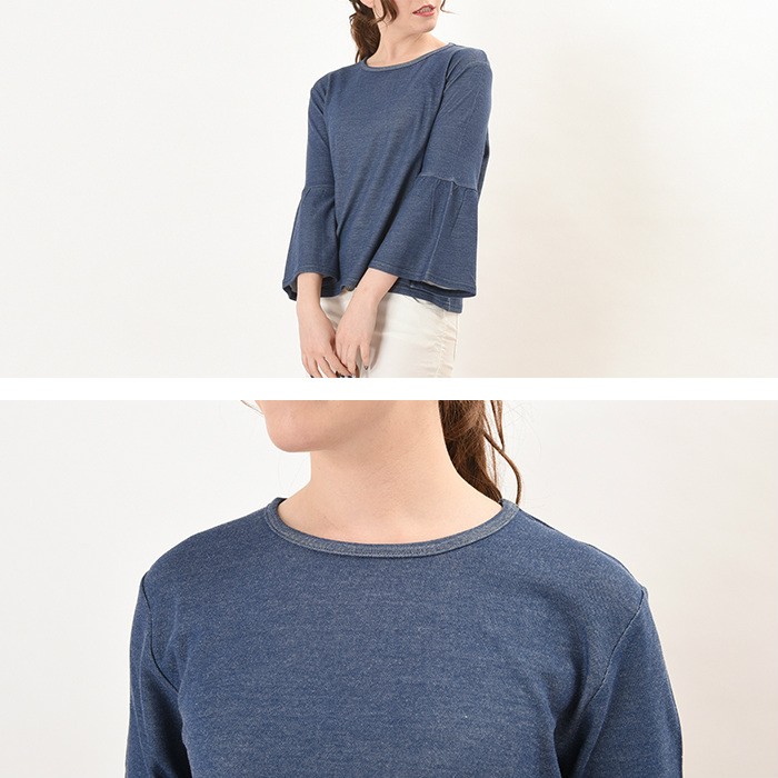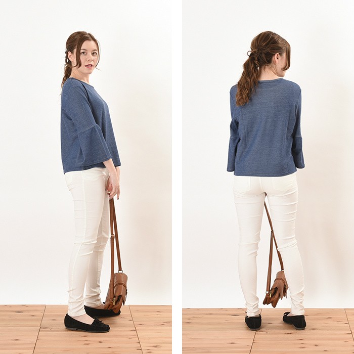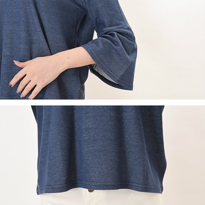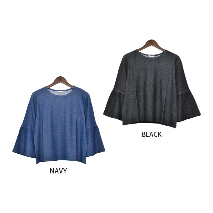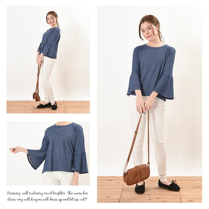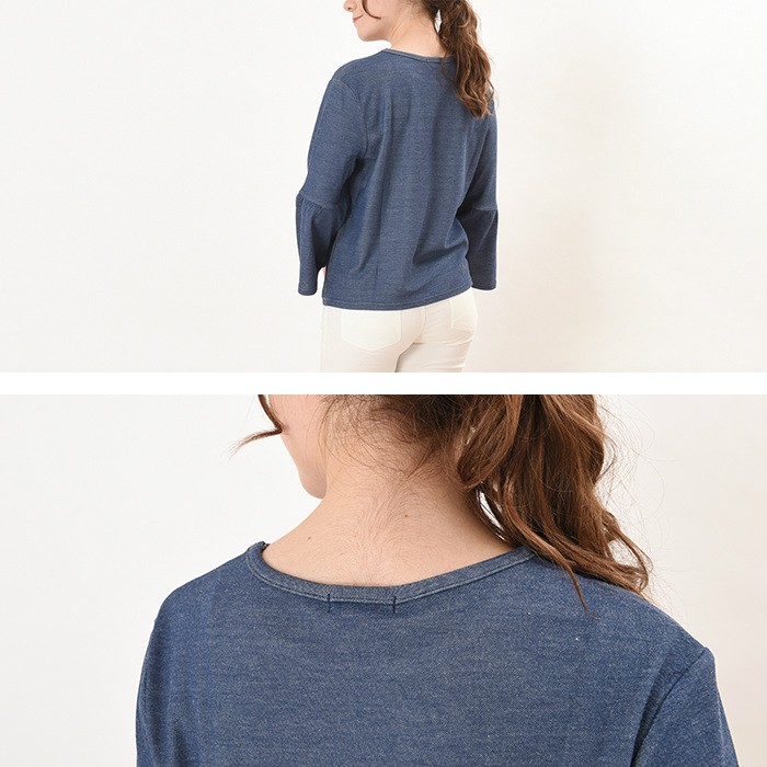 袖部分がフレアに広がるガーリーなシルエットで、人気のデザインです。気になる二の腕もしっかりとカバーできるので幅広い年齢層の方に大人気です♪カットデニムの風合いがカジュアルなので、普段着にぴったりでコーディネートに取り入れやすくワードローブにお使いいただけます♪Mサイズ Lサイズ