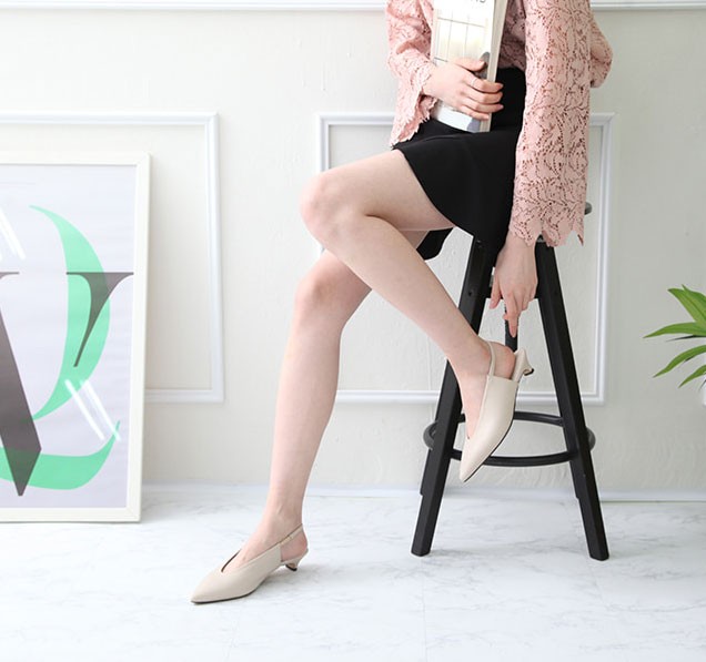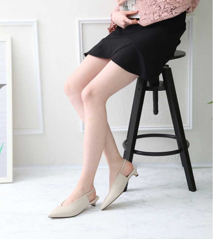 商品名:パンプス レディース ポインテッドトゥ スリングバック ローヒール 2018 春 ファッション 靴 婦人靴