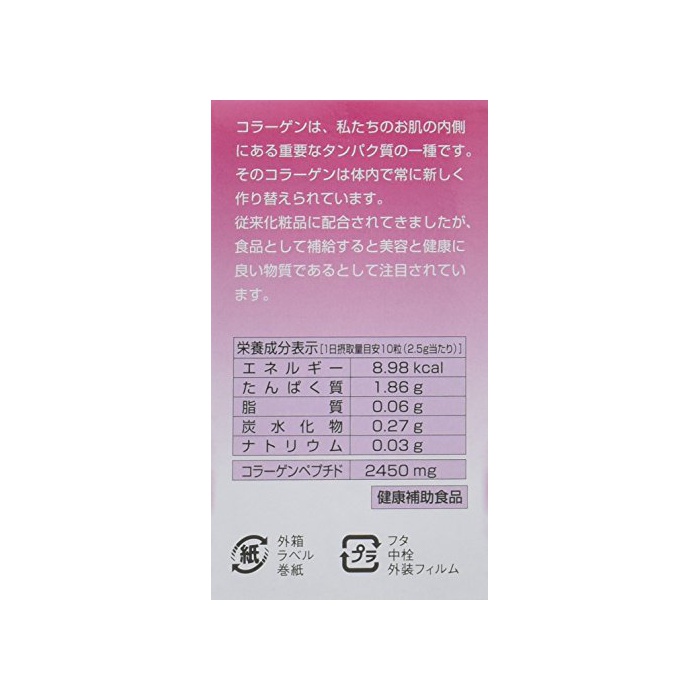 일본산의 돈유래 콜라겐원말을 98%원료에 사용.드시기 쉬운 입타입.