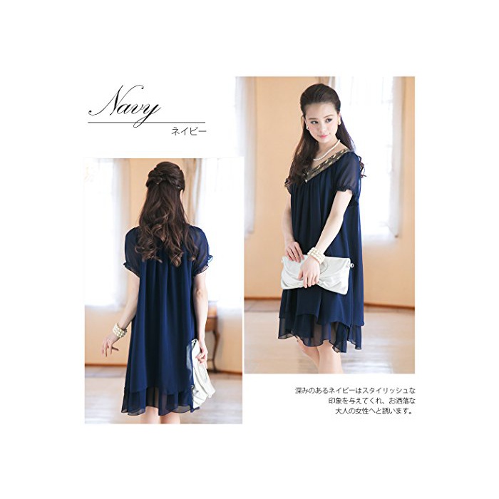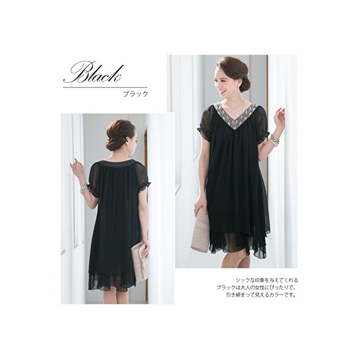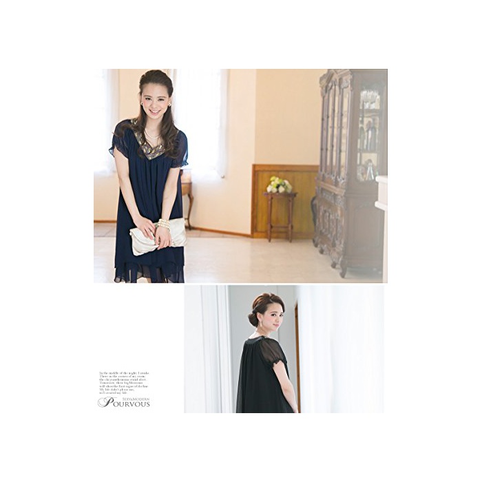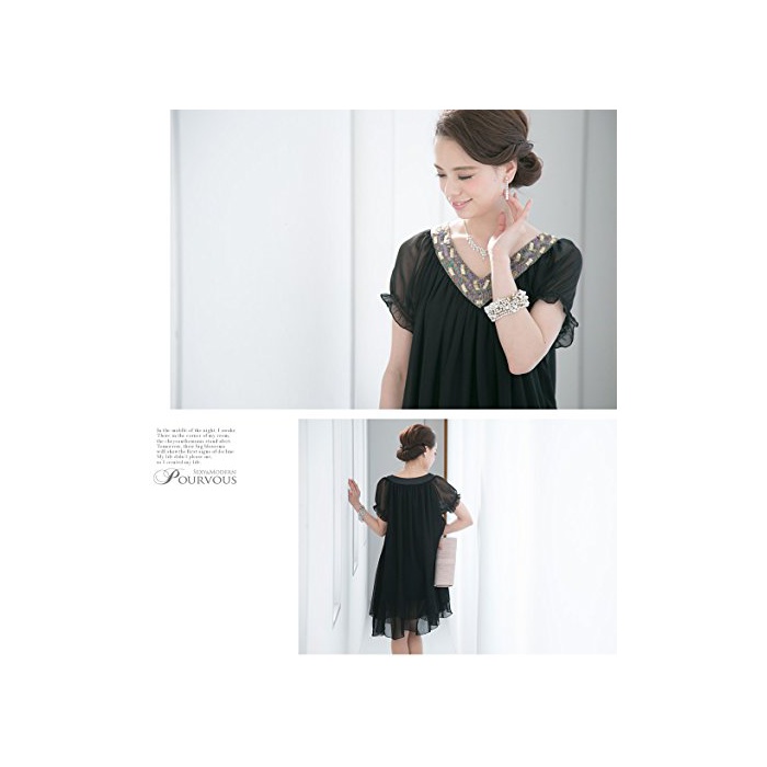 PourVous(풀《―》) (풀《―》) PourVous원피스 드레스 파티 드레스 여성 정장 Mrs. 포멀 원피스 불리 결혼식 2차 모임 피로연 크 큰 사이즈 반소매슬장 A라인 시폰 XL 블랙