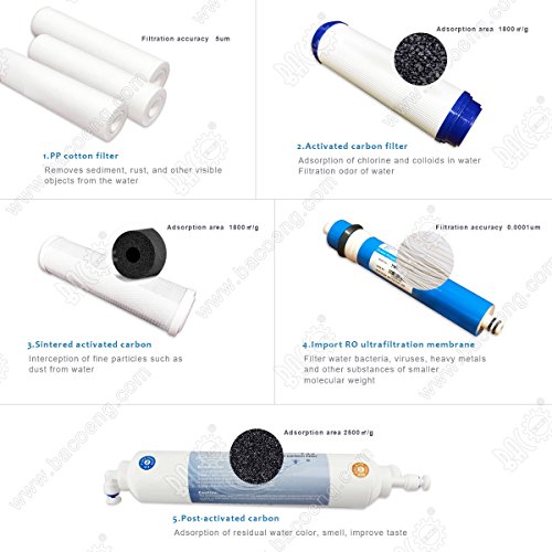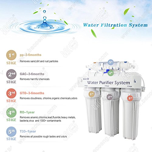 BACOENG 5-Stage RO Reverse Osmosis Under-Sink Drinking Water Filter System,75 GPD