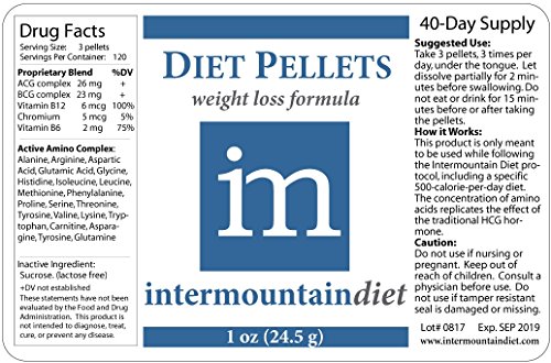-. Binding : Health and Beauty -. Brand : Intermountain Diet -. EAN : 0757347414075 -. Feature : 100% No-Questions-Asked Money-Back Guarantee / Includes both a Diet Guide and a Recipe Book (pdf format) / Unlimited email access to our online support team! / Made in the USA at an FDA inspected and GMP approved facility / All Natural, Zero Side Effects - Contains NO Grain Alcohol Preservatives! -. IsAdultProduct : 0 -. Label : VOX Nutrition -. Manufacturer : VOX Nutrition -. MPN : VOX-46 -. PackageQuantity : 1 -. PartNumber : VOX-46 -. ProductGroup : Health and Beauty -. ProductTypeName : HEALTH_PERSONAL_CARE -. Publisher : VOX Nutrition -. Studio : VOX Nutrition -. Title : Intermountain Diet Pellets, Complete Weight Loss System, 40-day supply, Lose 1 to 2 lbs per Day - Guaranteed -. UPC : 757347414075