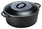 -. Feature : 5-quart Dutch oven with cast-iron lid ideal for slow-cooking foods / Red cast-iron construction heats slowly and evenly / Pre-seasoned with vegetable oil formula and ready for immediate use / Self-basting domed lid preserves moisture; loop handles aid in carrying / Measures 12 inches in diameter and 4-3/4 inches deep; hand wash; lifetime warranty