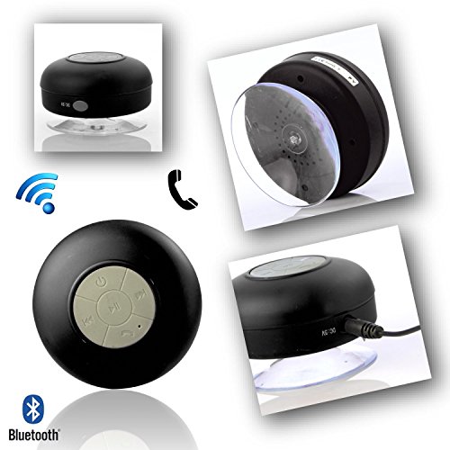 -. Feature : Built-in Bluetooth 3.0 module, can be paired with iPhone 4/4s/5/5c/5s, iPad, Galaxy S4/S3, Note3/2, HTC phones or any other bluetooth-enabled devices. / Support Bluetooth stereo sound, perfect sound quality.Built-in Microphone, enjoying hand-free call. / Powered by built-in rechargeable battery (charged by USB cable). / With unique water-resistant design with suction cup back, it can be sucked on any flat surface including desk, shower, door, wall, window, etc.Convenient buttons for music and call control. / Suitable for car, bedroom, wash room, kitchen, office, conference, business trip, vacation, etc.