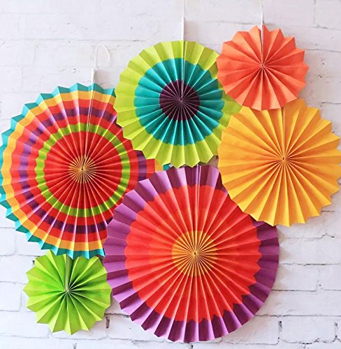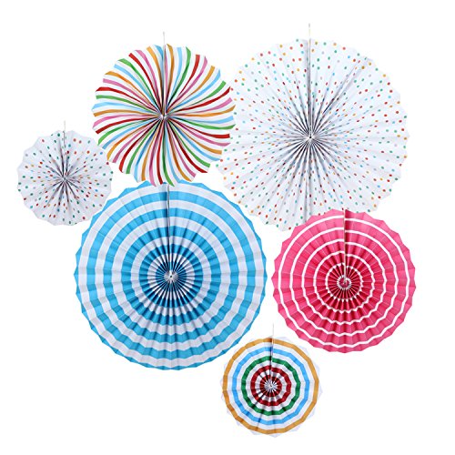 SUNBEAUTY 6er Set Tissue Papier Fans Facher Dekoration fur Party Feier Hochzeit Geburtstag Kombination 21cm 31cm 42cm