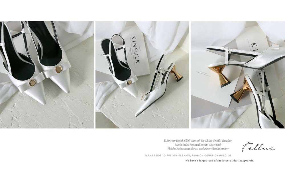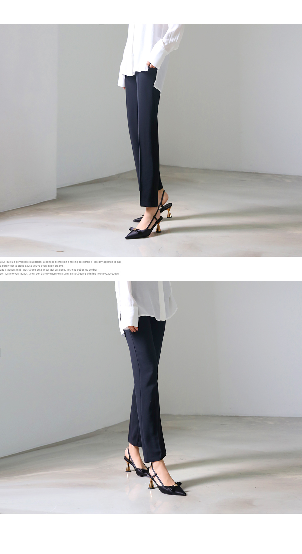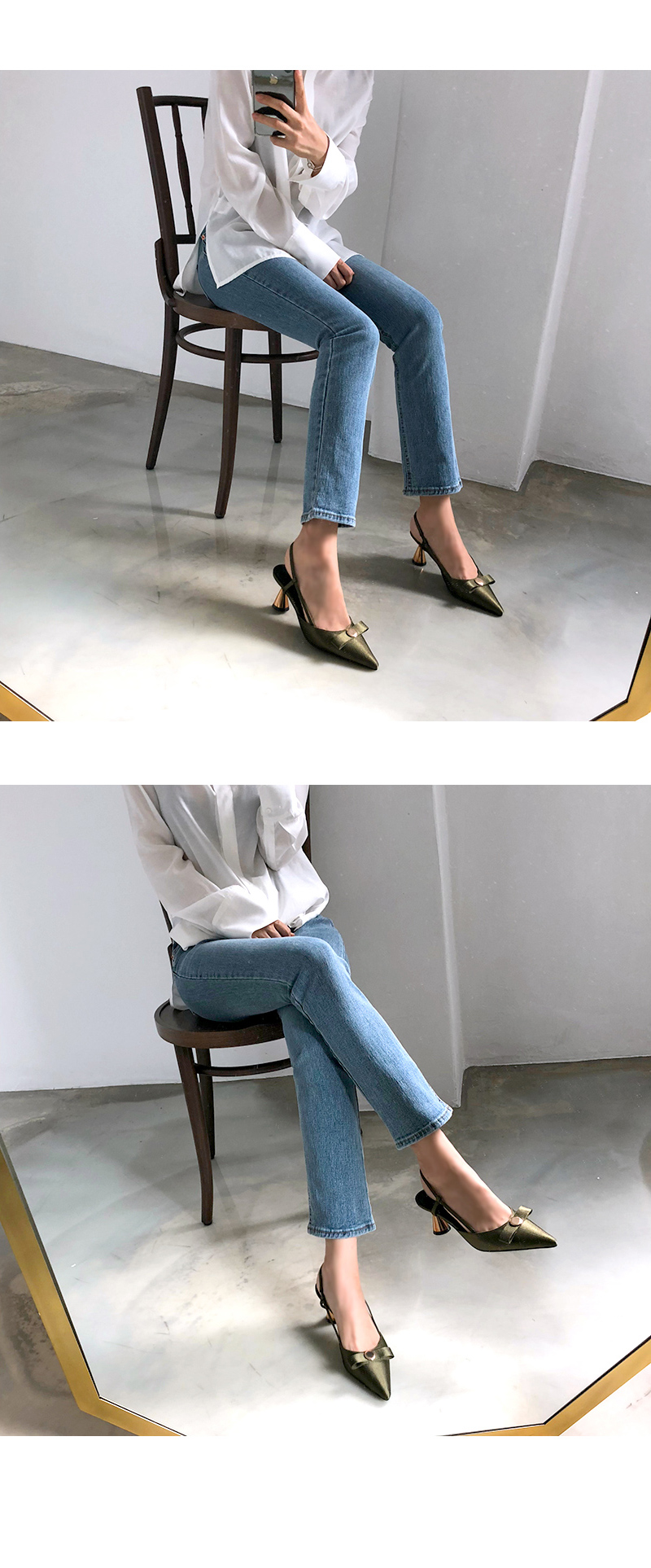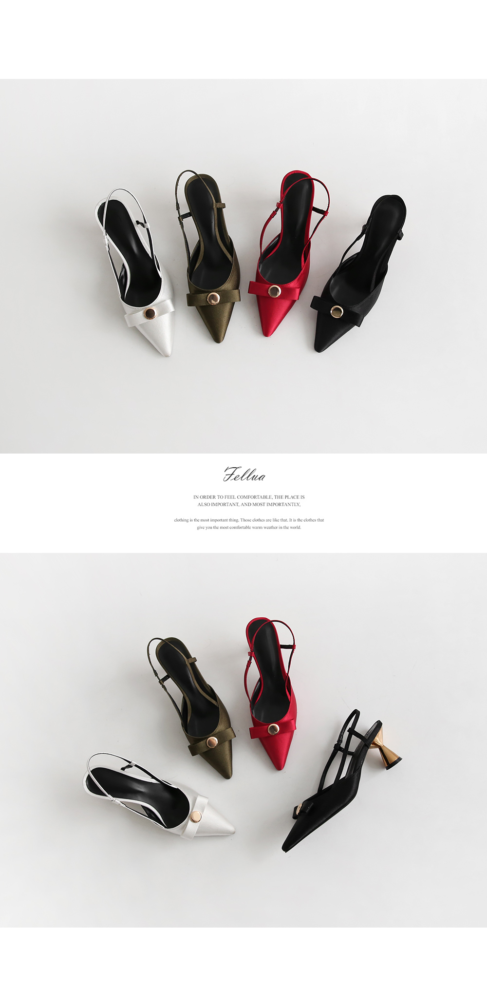 DETAILS - 소재 : 인조소가죽 새틴 - 컬러 : ivory,wine,green,black - 피팅감 : 정사이즈 / 무게 : 보통인편 - 착화감 : 슬링백 밴드조절이 가능해요:) - 모델피팅 : 230