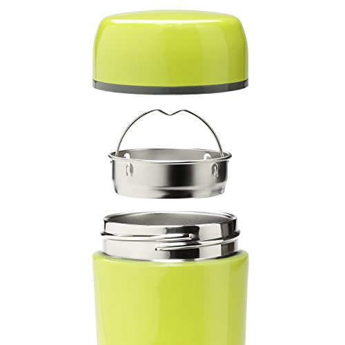 -. Feature : EXCEPTIONAL QUALITY: Constructed of 18/8 food-grade stainless steel and completely leakproof, this tea infuser mug is really durable. / FUNCTIONAL: Double-walled and vacuum-insulated to keep liquids piping hot or icy cold for over 6 hours. / STYLISH DESIGN: Sleek, slim and lightweight tea thermos with shallow infuser in a fun, vibrant color that is easy to carry because of its contoured design. / PRACTICAL: Removable tea filter for on-the-go tea drinking. Keeps tea leaves out of every sip. And the filter snaps in snug and secure so there are no loose components moving around when you're sipping from the bottle. / MESS-FREE: Leakproof with a non-slip bottom makes using this travel mug a no-mess drinking experience. Carry it in your purse, backpack or briefcase with the peace of mind that nothing will escape this bottle.