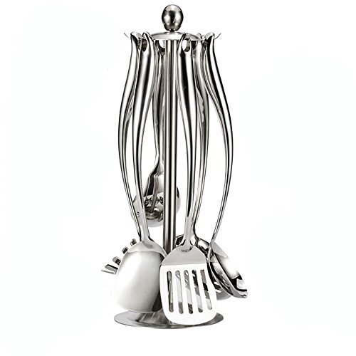 -. Title : Ailina 7 Piece Mirror Polishing Stainless Steel Cooking & Serving Utensils Kitchen Gadgets Set with Organizer Holder Stand (SST-410)