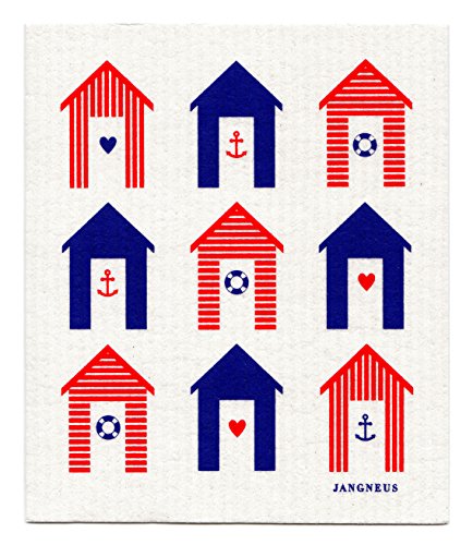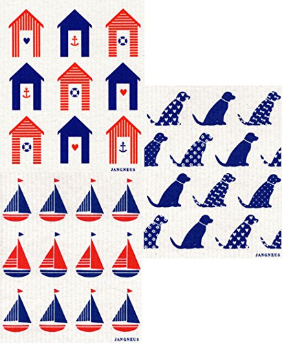 Swedish Dishcloth - (KP) Set of 3 Blue & Red - Cabana, Dogs, Sailboat
