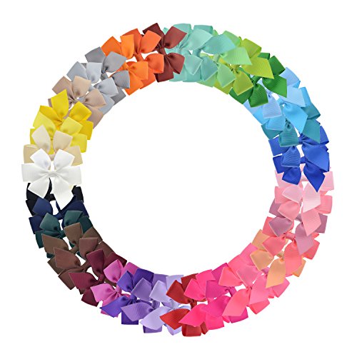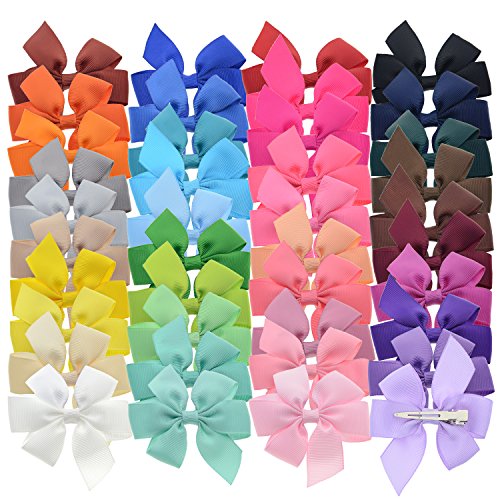Our Boutique Hair bow size: 3"; Made By 0.87” quality & environmental grosgrain ribbon; Attached with 1.78" metal alligator clips, Set of 40 popular Colors.