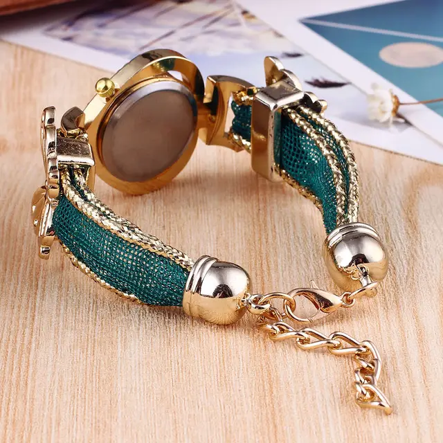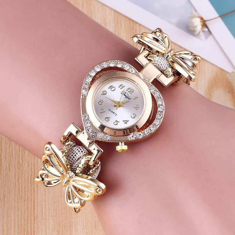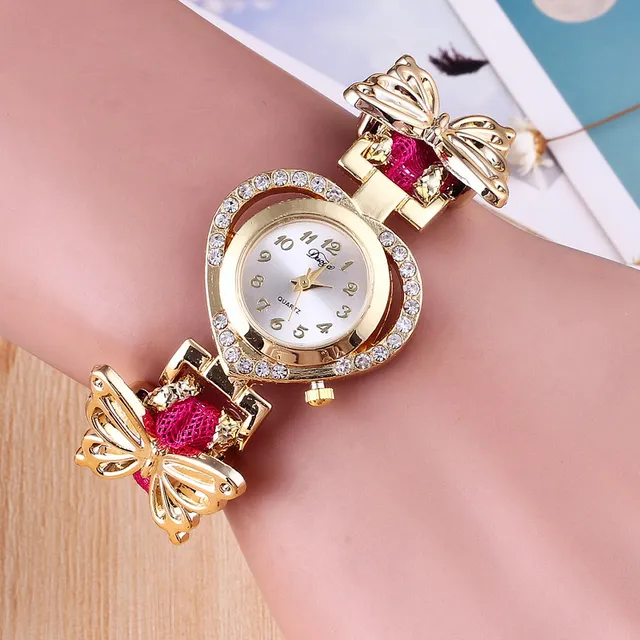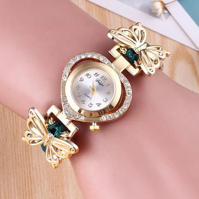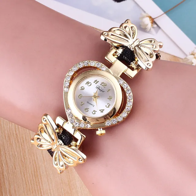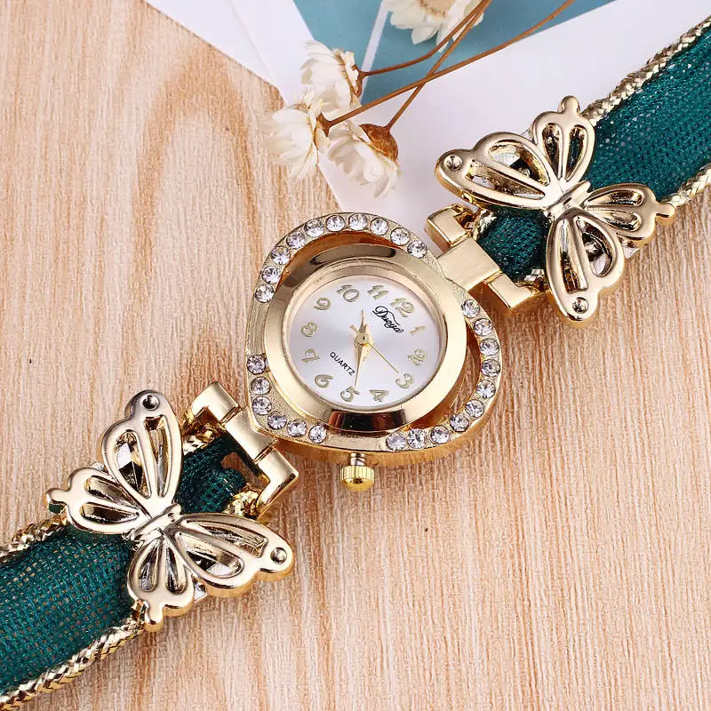 | [해외] 여성의 팔찌 시계 패션 라인 석 나비 장식 방수 학생 석영 손목 시계 |