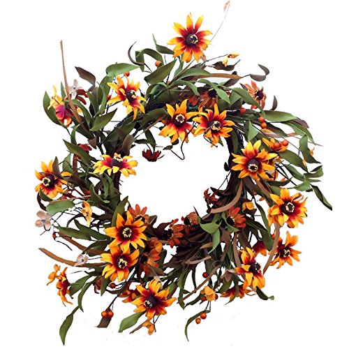 - The green leaves and massive amount of sunflowers combine to make this beautiful seasonal wreath