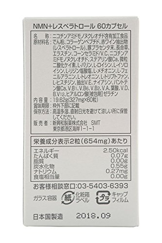 -. Feature : Supplement containing NMN 300mg and 600mg of resveratrol extracted from red wine. (NMN Purity : over 98%) / For people who care about aging and appearance and who want to live long actively. / NMN, which stands for nicotinamide mononucleotide, is a kind of vitamin B3 (niacin) and is said to activate Sirtuin genes, which are related to longevity. / Made in Japan