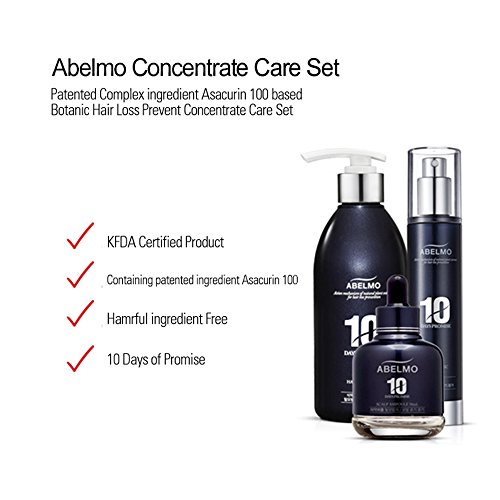 Studio : Abelmo Publisher : Abelmo Binding : Misc. Product Description 10 Days of Promise, Abelmo Concentrate Care Set - Patented Complex ingredient Asacurin 100 based Botanic Hair Loss Prevent Concentrate Care Set Containing patented ingredient Asacurin 100/Hamrful ingredient Free Asacurin 100, Botanic hair regrowth complex researched 15 years and reported SCI level thesis How does it work? Extending 'Anagen' Shortening 'Telogen' Main ingredients : Iris, Morus Bark, Licorice, Pine Leave, Shrubby sophora, Cengong, dong quai, Portulaca, Centella, zedoaria, Manchurian angelica 0