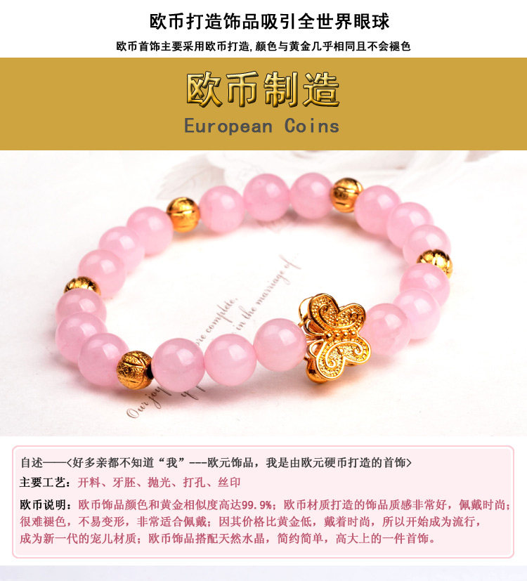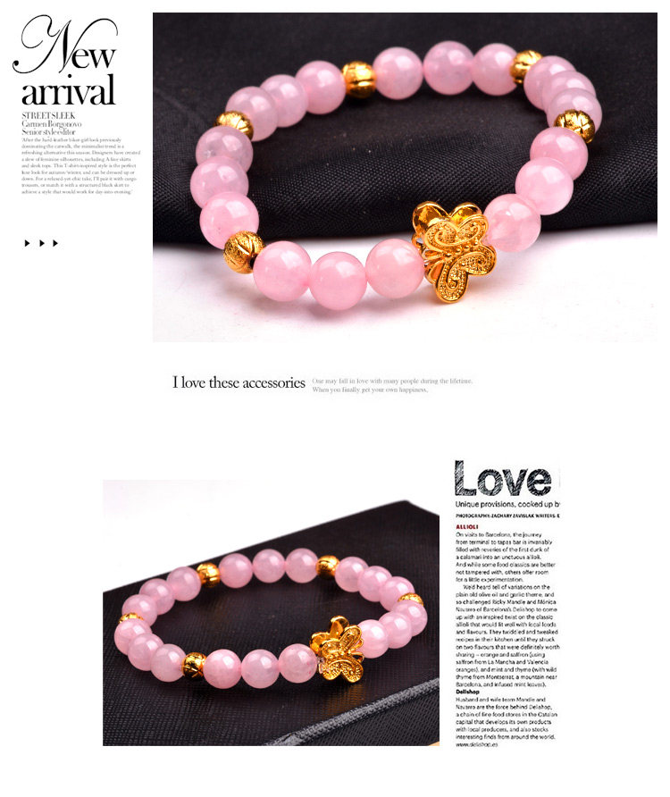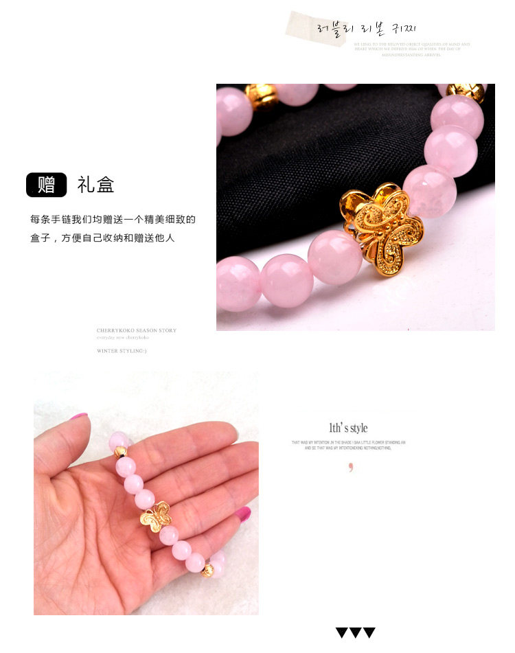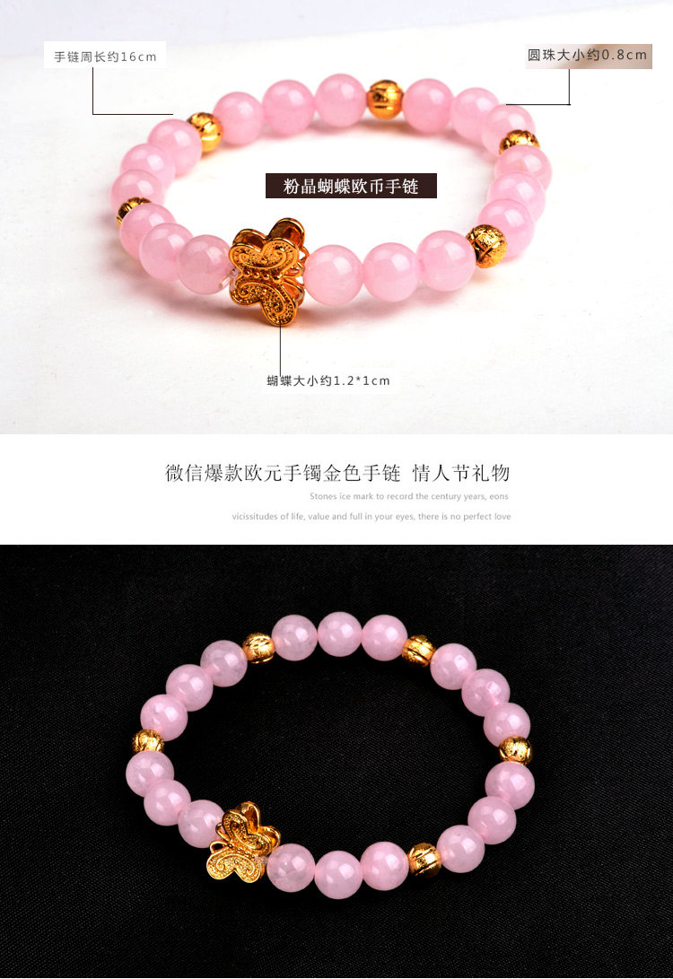 天然粉晶招桃花旺爱情欧币手链气质蝴蝶手串饰女款