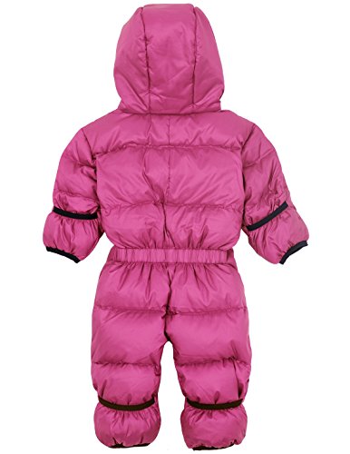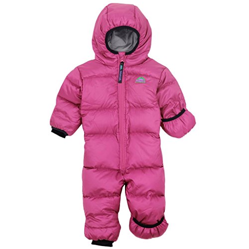 Molehill's Summit Down Bunting Suits are the warmest insulated suits on the market. The 80/20 fill of goose down and feathers (700 goose down fill power) provides the perfect insulation for those really cold environments. Our micro rip-stop polyester exteriors give the needed toughness. Shells feature durable water repellent (DWR) down proof recyled polyester which helps to repel moisture. Cuffs (sleeves/legs) and waist (back only) are elastic to offer versatility and a better fit. Interior Lycra wrist and ankle gaskets promote added warmth. Fold over hands and feet eliminate the need for mittens and booties on quick trips out. Molehill logo on left chest. Fully insulated non-removable hoodie. Zippered front with reinforced zipper flap to seal out the wind. This is the perfect boys and girls down bunting suit for the coldest environments like snow. These down suits for infants and toddlers are only available in sizes 3/9 mos up to 3T. ABOUT MOLEHILL MT. EQUIPMENT: Since 1994, Molehill Mt. Equipment has concentrated on offering the highest quality infant, toddler, and junior apparel reminiscent of the top quality products from the adult outdoor sporting goods industry. Our apparel lines stress a layering concept and offer technical fabrics and functional features. PLEASE BE AWARE THAT DUE TO LIGHTING, THE COLOR OF SOME GARMENTS MAY APPEAR DARKER/LIGHTER IN PERSON THAN THEY MIGHT APPEAR ON YOUR MONITOR SCREEN.Feature
