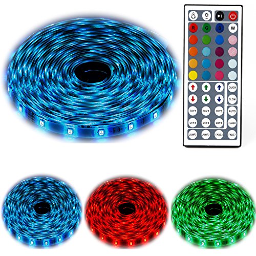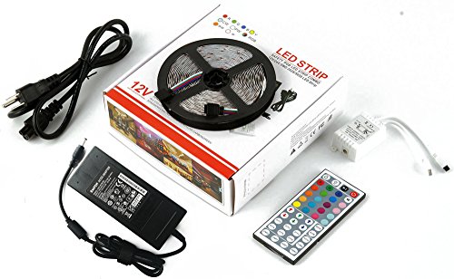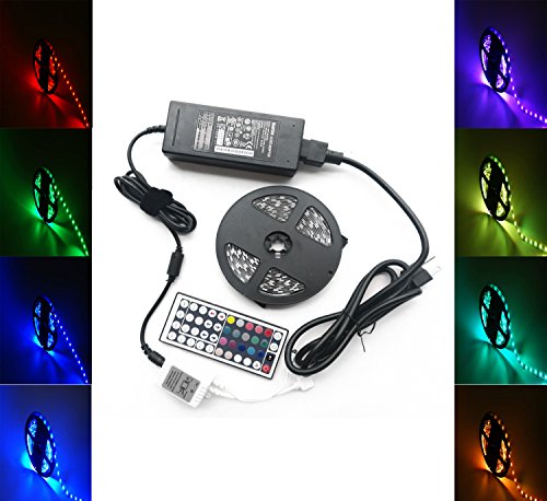 Led strip light, 5M 16.4Ft, 5050 RGB 300LEDs ,Flexible Color Changing, Full Kit with 44 keys IR Remote Controller, Control Box, 12V 5A Power Adapter for Home Decoration
