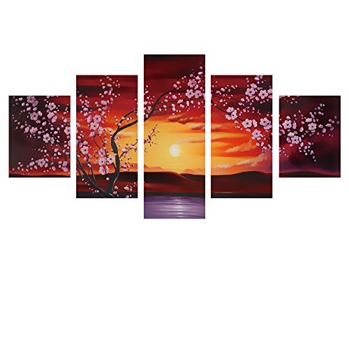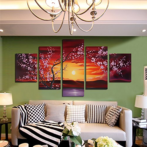 -. Title : GEVES 5 pcs Sunrise Sakura Oil Painting Giclee P.R.Int Art Paintings for Living Room Bedroom Wall Decor P.R.Ints No Frame