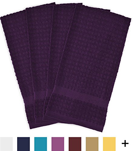 DII Cotton Waffle Terry Dish Towels, 15 x 26" Set of 4, Ultra Absorbent, Heavy Duty, Drying & Cleaning Kitchen Towels-Eggplant