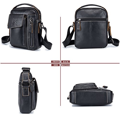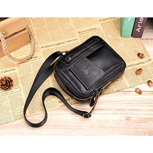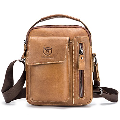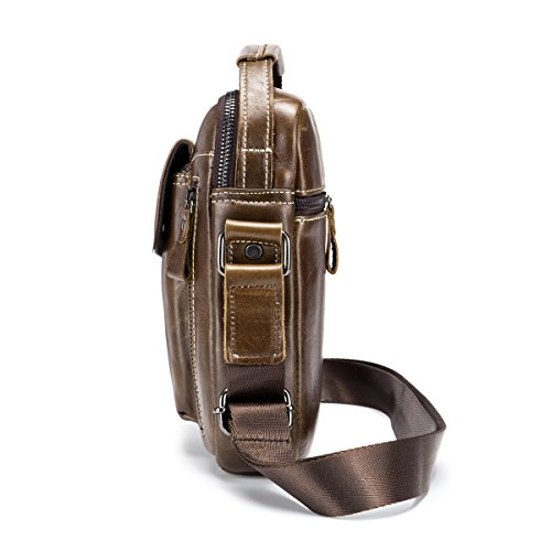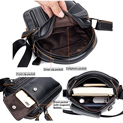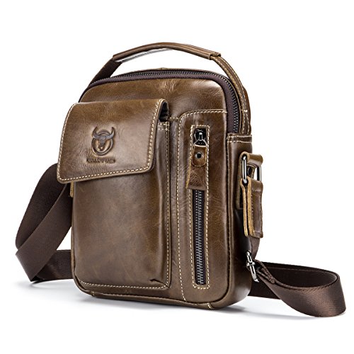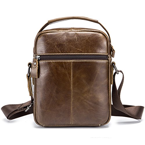 -. Feature : [Material /Fabric]: High quality first layer cowhide leather(Genuine products. 100% brand new, original and high quality) with breathable polyester lining. / [Color]: Brown, coffee, brown and yellow brown. Four colors for your needs. Please allow little color difference due to the monitor and light brightness. / [Dimension]:7.09(L)*2.36(W)*8.66(H)(in). Weight: 0.35kg. Please allow 0.3"-0.9" in size error due to manual measurement. / [Structure]: This shoulder bag got multiple pockets. Consists of one zippered main bag, two front pockets which suitable for Iphone and one back pocket, one cell phone pocket and one card pocket to safely store and organize your cellphone, ipad mini, wallet, keys, ID card, credit card, small snacks, notebooks and other personal belongings. / [Features]: Stylish, multi-function and practical design. Ideal for everyday use. Perfect for student study, business ,outdoor, travel and work. It is convenient & comfortable to wear in 2 ways, shoulder and cross body.