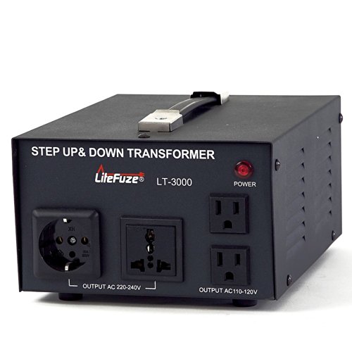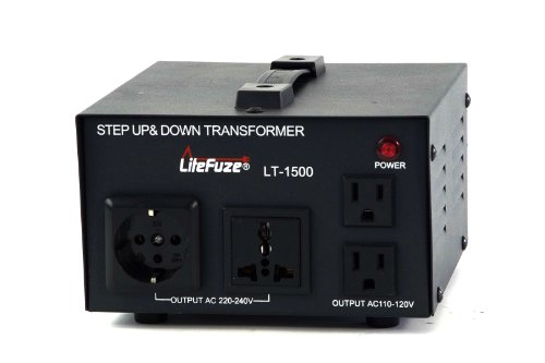 The LiteFuze LT series 1000 watt Step Up/Step Down heavy duty voltage transformer is equipped with circuit breaker protection so you'll never need to replace fuses on overload. It also features the convertingbox technology which ensures lighter weight and noise reduction during operation. The LT-1000 is compatible to operate on 50 hz or 60 hz. It is designed to convert single phase 110-120V to 220-240V or 220-240V to 110-120V. This CE certified transformer is safer with advanced side vents for ventilation. The efficiency factor of LT series voltage transformers is 1.5, use this factor to determine the correct size voltage transformer for your electronics/applainces. Just multiply the efficiency factor times the max power(watt) rating of your product and then purchase a transformer of atleast that size. LT series transformers are equipped with high grade copper coils which makes them energy efficient during voltage conversion. 5 Year Manufacturer's Limited WarrantyFeature
