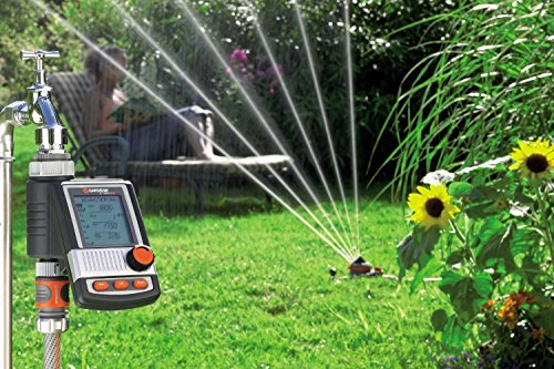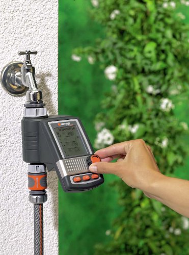 -. Binding : Lawn & Patio -. Brand : Gardena -. EAN : 4078500186483 -. Feature : Luxury model with electronic data display and programming tailored to individual requirements. / Watering up to 6 times a day, watering time up to 9 hours and 59 minutes. / Watering days can be freely selected. / GARDENA Rain Sensor electronic and Soil Moisture Sensor can be connected. / Approx. 1 year running time with 1 x 9 V alkaline battery (not included). -. Label : Gardena -. Manufacturer : Gardena -. Model : 1864-U -. MPN : 1864-28 -. PackageQuantity : 1 -. PartNumber : 1864-28 -. ProductGroup : Lawn & Patio -. ProductTypeName : OUTDOOR_LIVING -. Publisher : Gardena -. Studio : Gardena -. Title : Gardena 1815 Comfort 6-Cycle Digital Water Timer/Computer C 1060 Plus