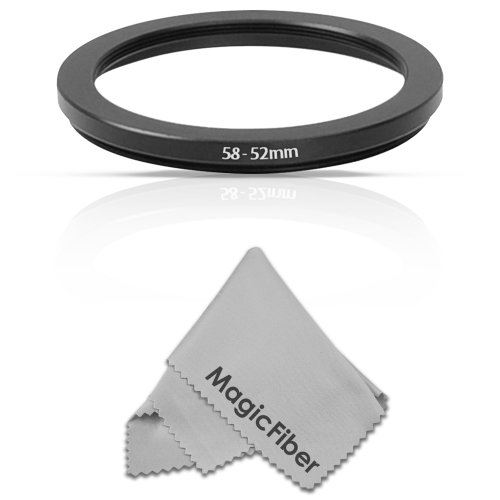 Goja 58-52mm Step-Down Adapter Ring (58mm Lens to 52mm Accessory) + Premium MagicFiber Microfiber Lens Cleaning Cloth