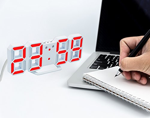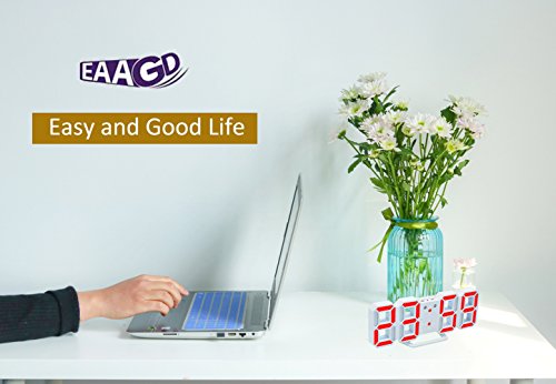 EAAGD Electronic LED Digital Alarm Clock [Upgrade Version] , Clock Can Adjust the LED Brightness Automatically in Night (White/Red)