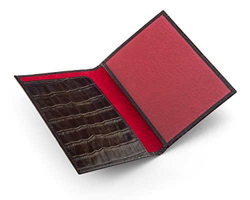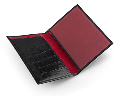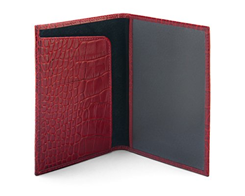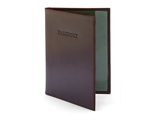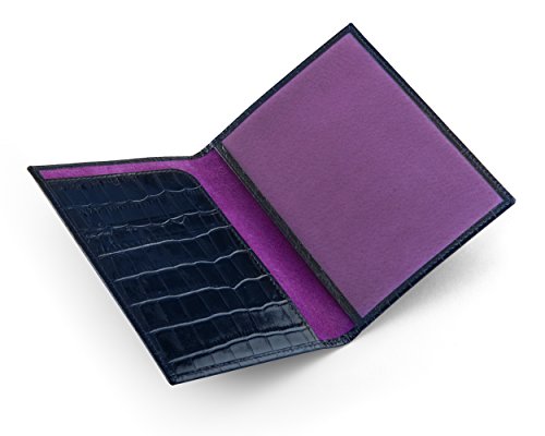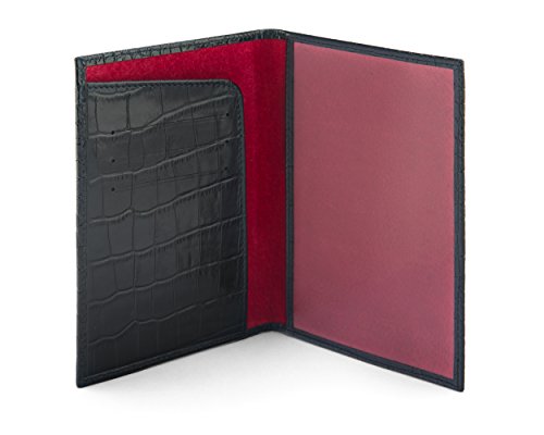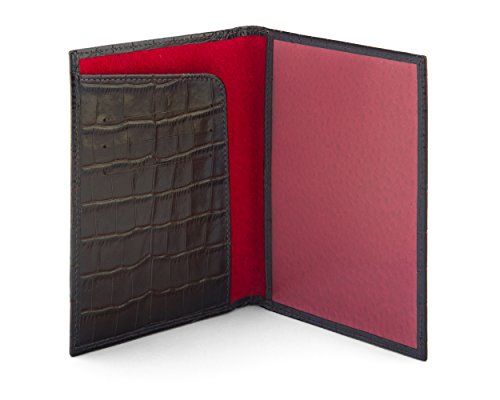 Studio : SageBrown Publisher : SageBrown Binding : Apparel Product Description This luxury leather passport cover is handmade from fine calf leather to protect your passport in style. Choose from an array of classic and contemporary colours in fine calf leather with a smooth or crocodile skin texture. Ideally suited for a UK passport or similar the front is elegantly plain apart from the word Passport that has been blind embossed on the front cover. Open up to reveal a leather shaped flap on the left with three credit card slots and on the right is a leather bound clear window to display all your personal details. The reverse is plain. Lined throughout in sumptuous contrast suede this is an ideal travel companion. 0