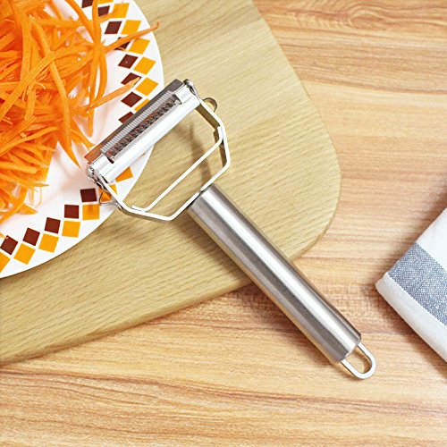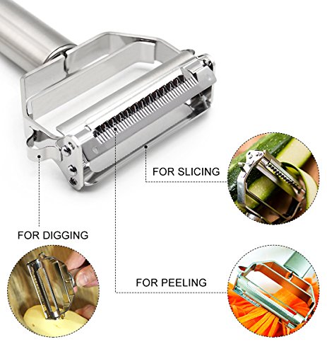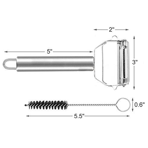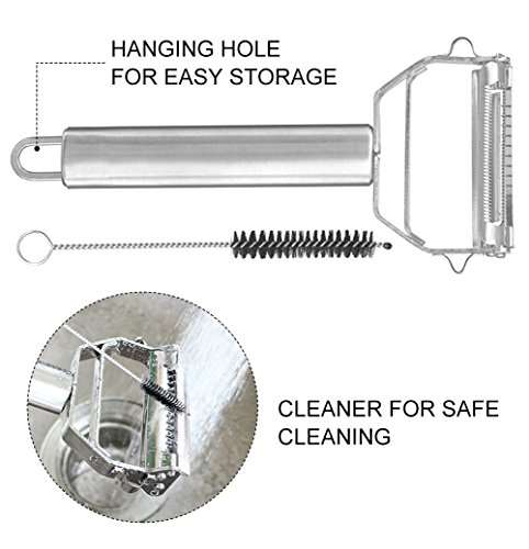 Slicer and Peeler 2-IN-1 Stainless Steel Kitchen Multifunctional Julienne Peeler Blade with Protector Cleaning Brush for Vegetable Fruit Cheese