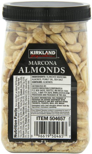 -. Title : Kirkland Marcona Almonds, Roasted and Seasoned with Sea Salt, 17.63 Ounce