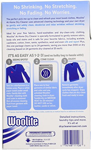 Woolite 11106 Dry Cleaner's Secret (6 Uses)-At Home Dry Cleaner for Fine Fabrics, Hand Washables and Dry Clean Only Clothing