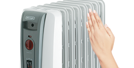 金属製の本体が密閉されたオイルによってあたためられ、部屋全体に熱を伝えます。
