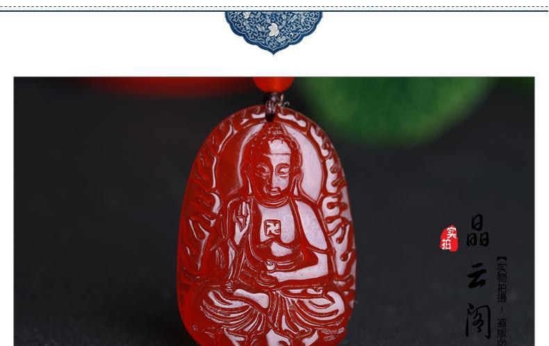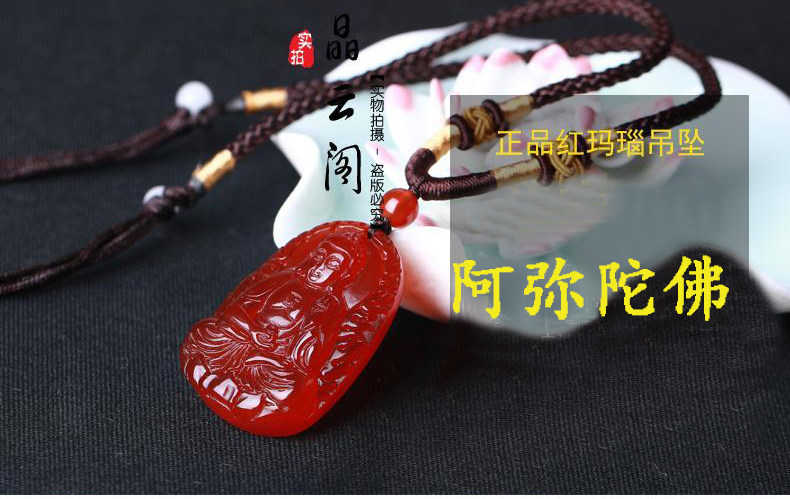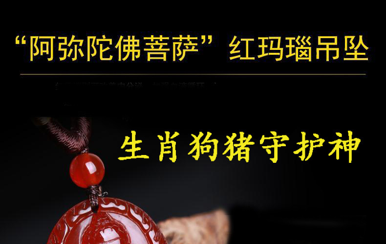 开光天然红玛瑙属狗猪守护神阿弥陀佛吊坠 男女项链礼物饰品