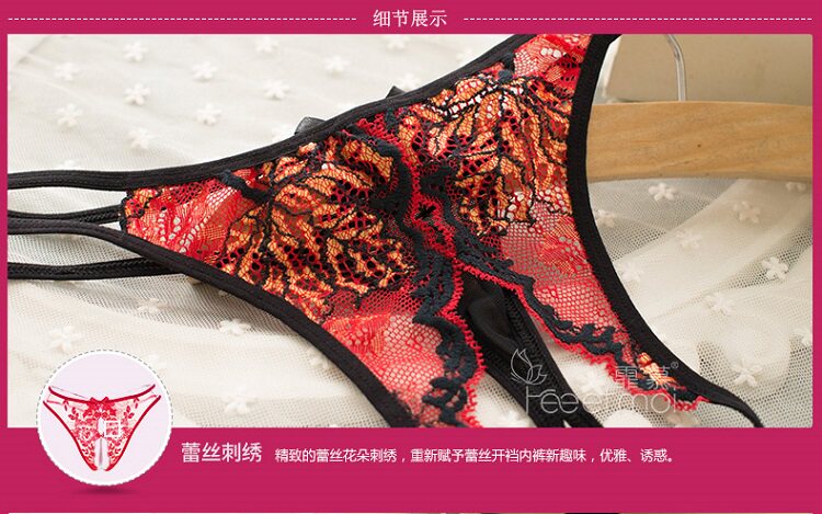 霏慕情趣内裤性感蕾丝开裆女式情趣内衣极度诱惑透视刺绣内裤6648