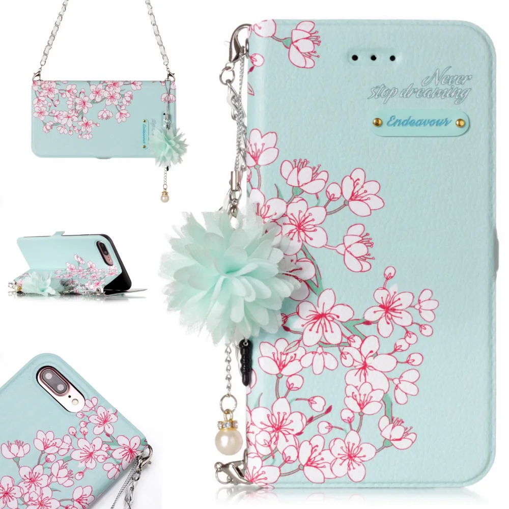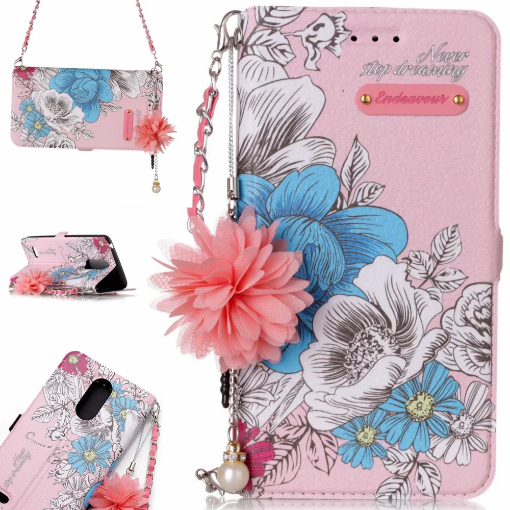 Features:Flower Leather Case With Chain