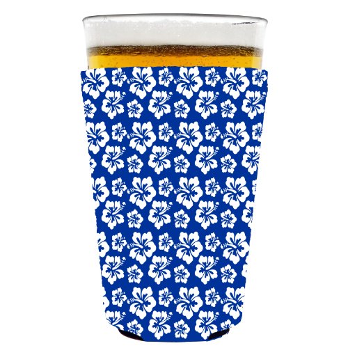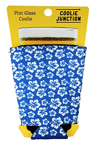 Coolie Junction Hibiscus Flower Pattern Pint Glass Coolie Blue and White
