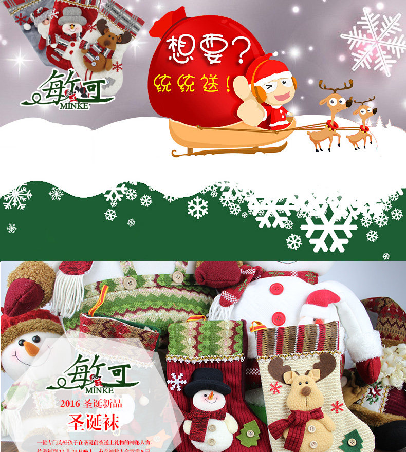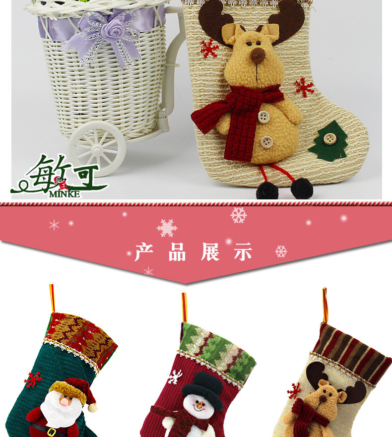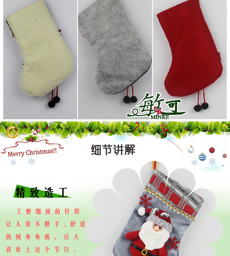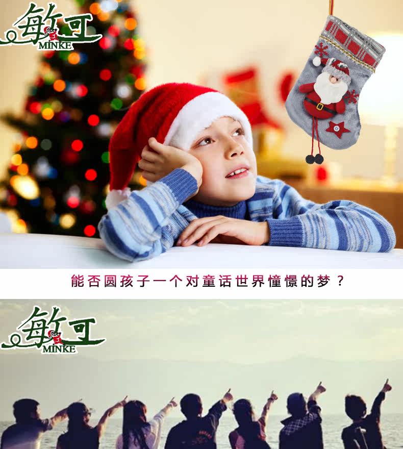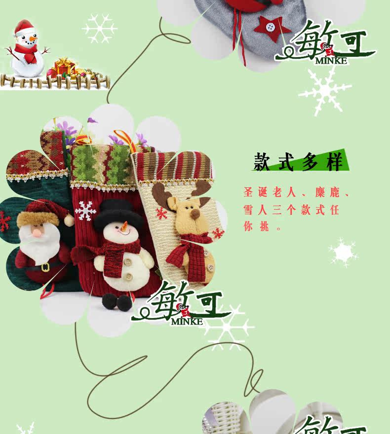 敏可 中号圣诞袜 针织袜子 圣诞老人平安夜礼物袋 卡通装饰品袜子